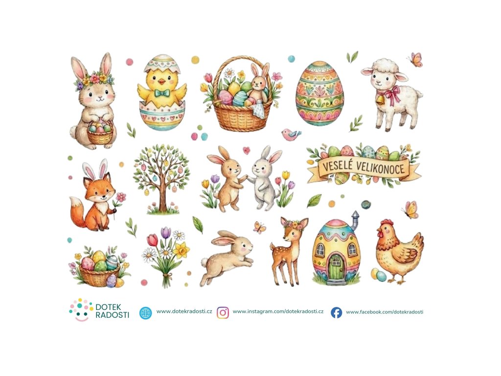 - Veselé velikonoční motivy – zajíčci, vajíčka, květiny a další lesní zvířátka