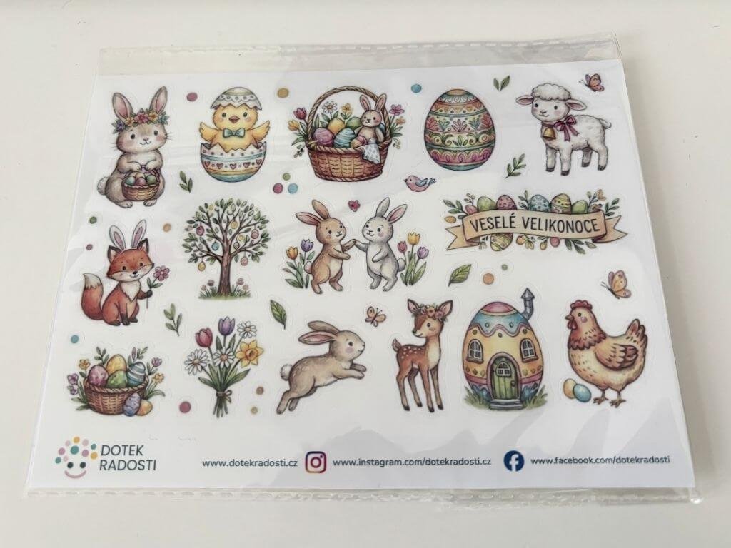Ano, samolepky jsou skvělé na zdobení dárků, obálek nebo velikonočních balíčků.
